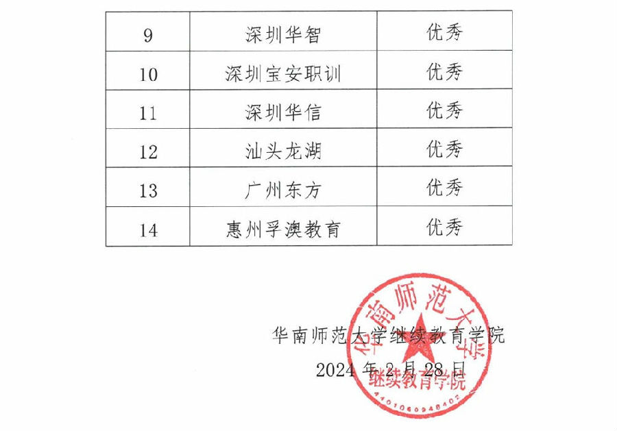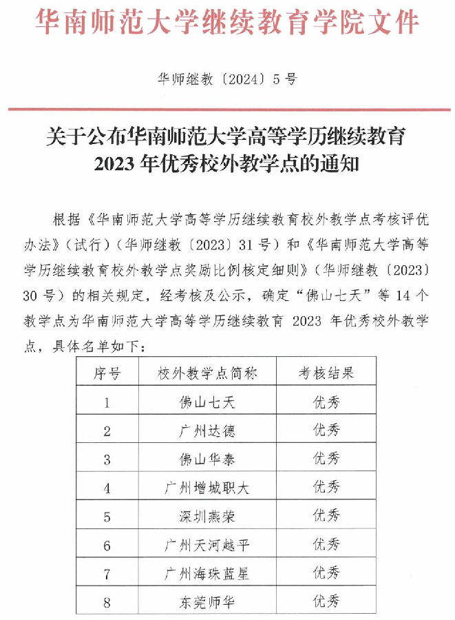 关于公布华南师范大学高等学历继续教育2023年优秀校外教学点的通知