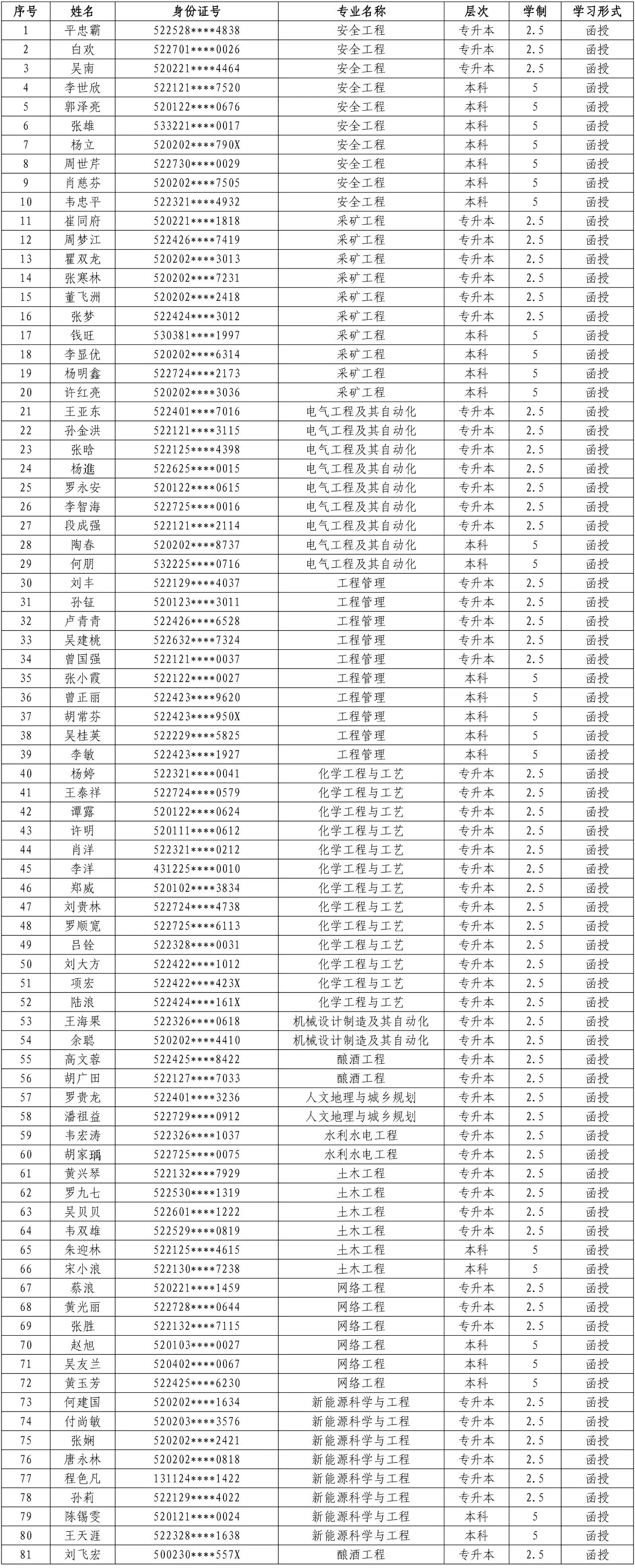 | 关于我校成人高等教育2024级平忠霸等81名放弃入学资格的学生名单的公示