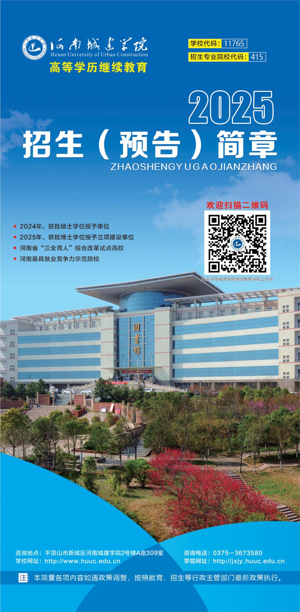 河南城建学院河南建筑职业技术学院高等学历继续教育校外教学点2025年招生(预告)简章