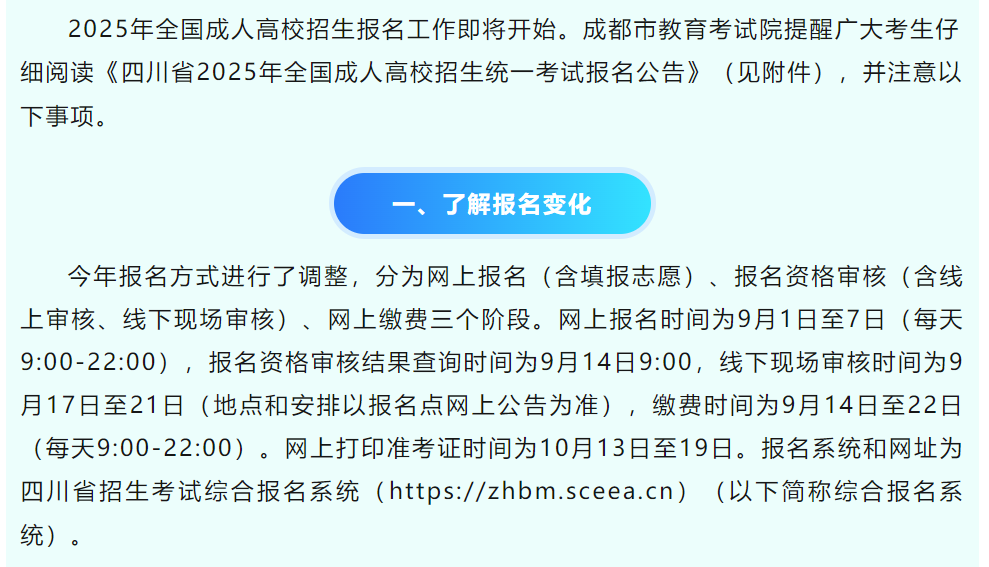 成都市2025年全国成人高校招生报名温馨提示