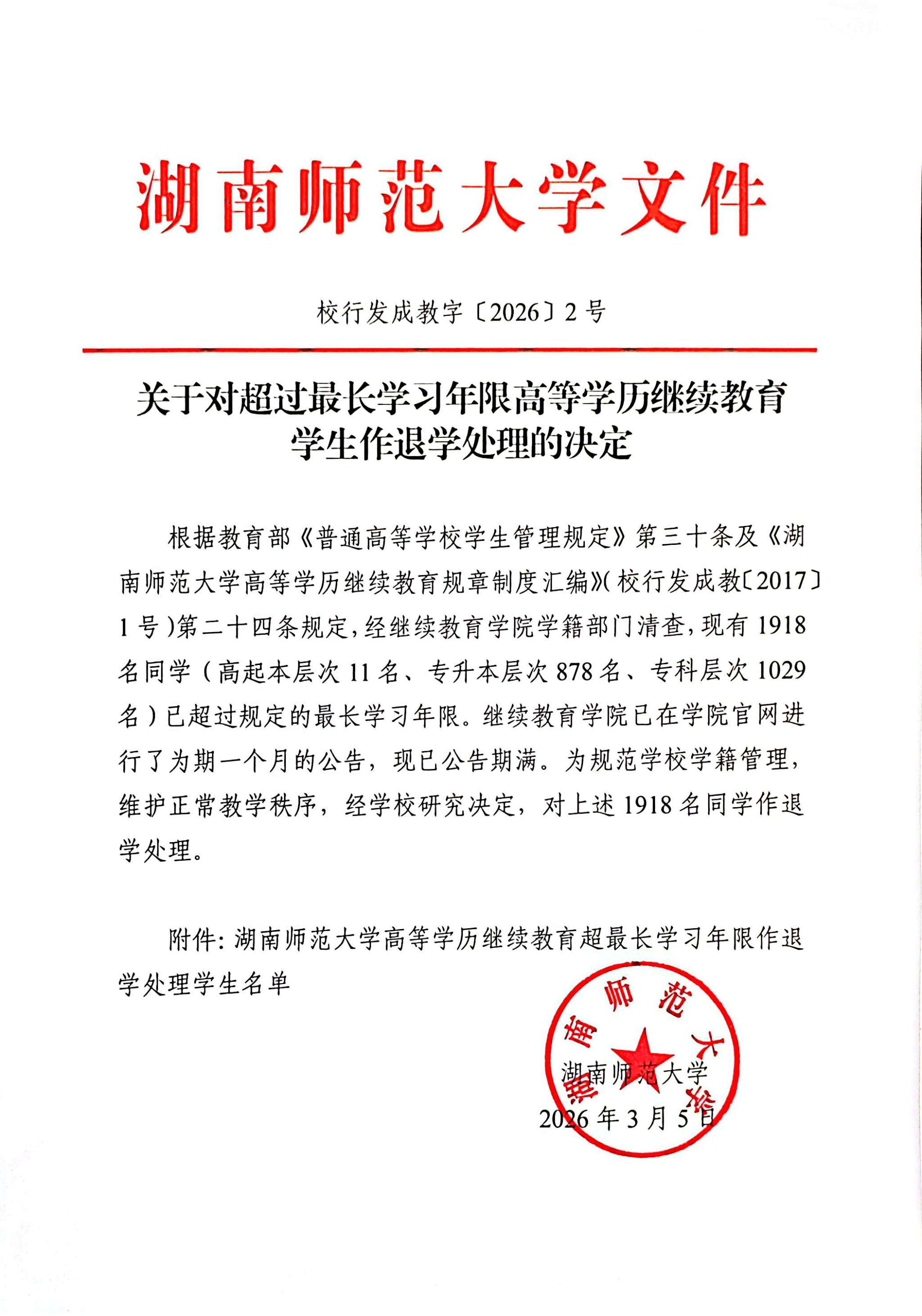 | 关于对超过最长学习年限高等学历继续教育学生作退学处理的决定