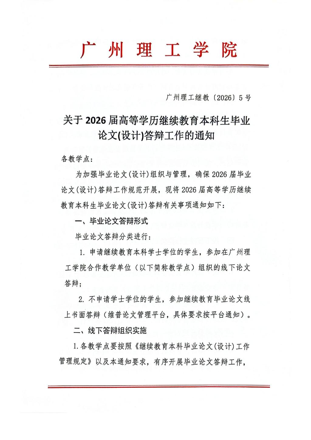 关于2026届高等学历继续教育本科生毕业论文(设计)答辩工作的通知