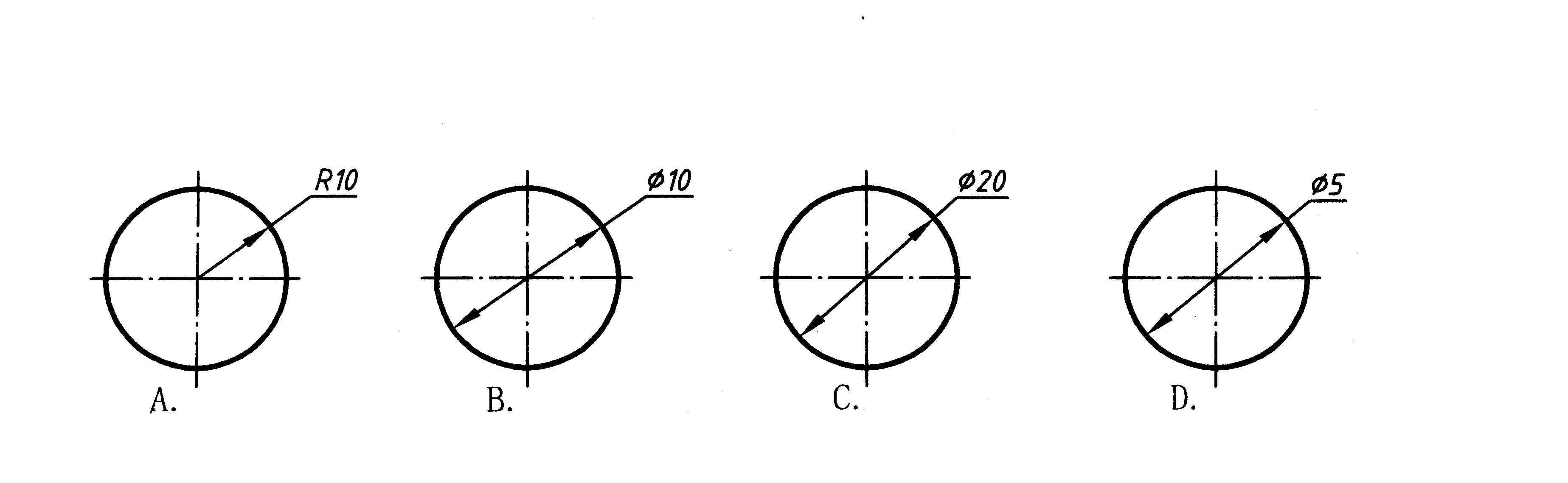 王老师:19139051760(拨打)复制微信 题目 更新时间:2024/3/18 圆的直径为10,采用比例2:1画出时该圆正确的尺寸标注是( )。·A·B·C·D 答案 登录 注册 单选题·B 出自:青书学堂 >> 佳木斯大学语言治疗学 佳木斯大学继续教育学院